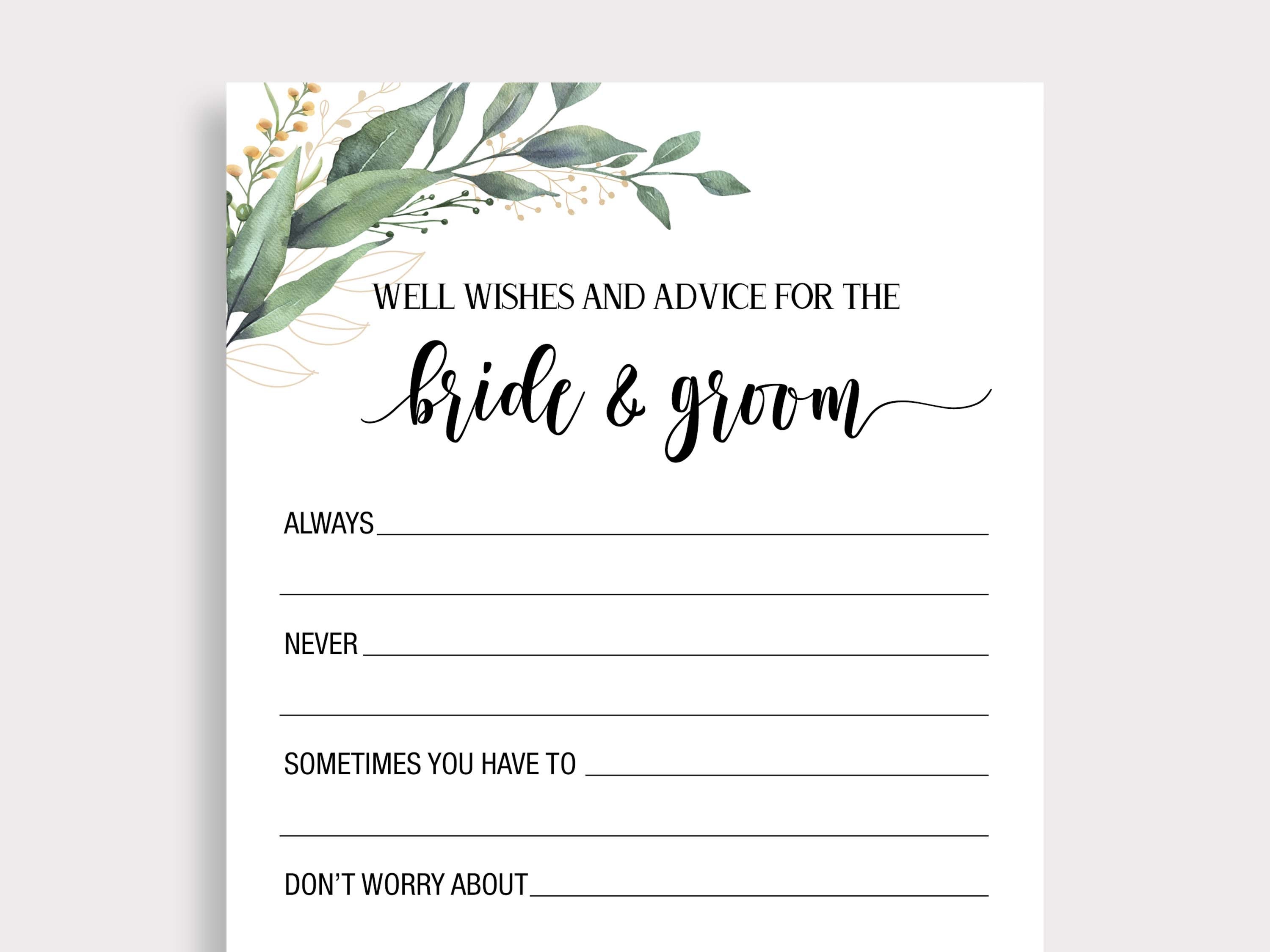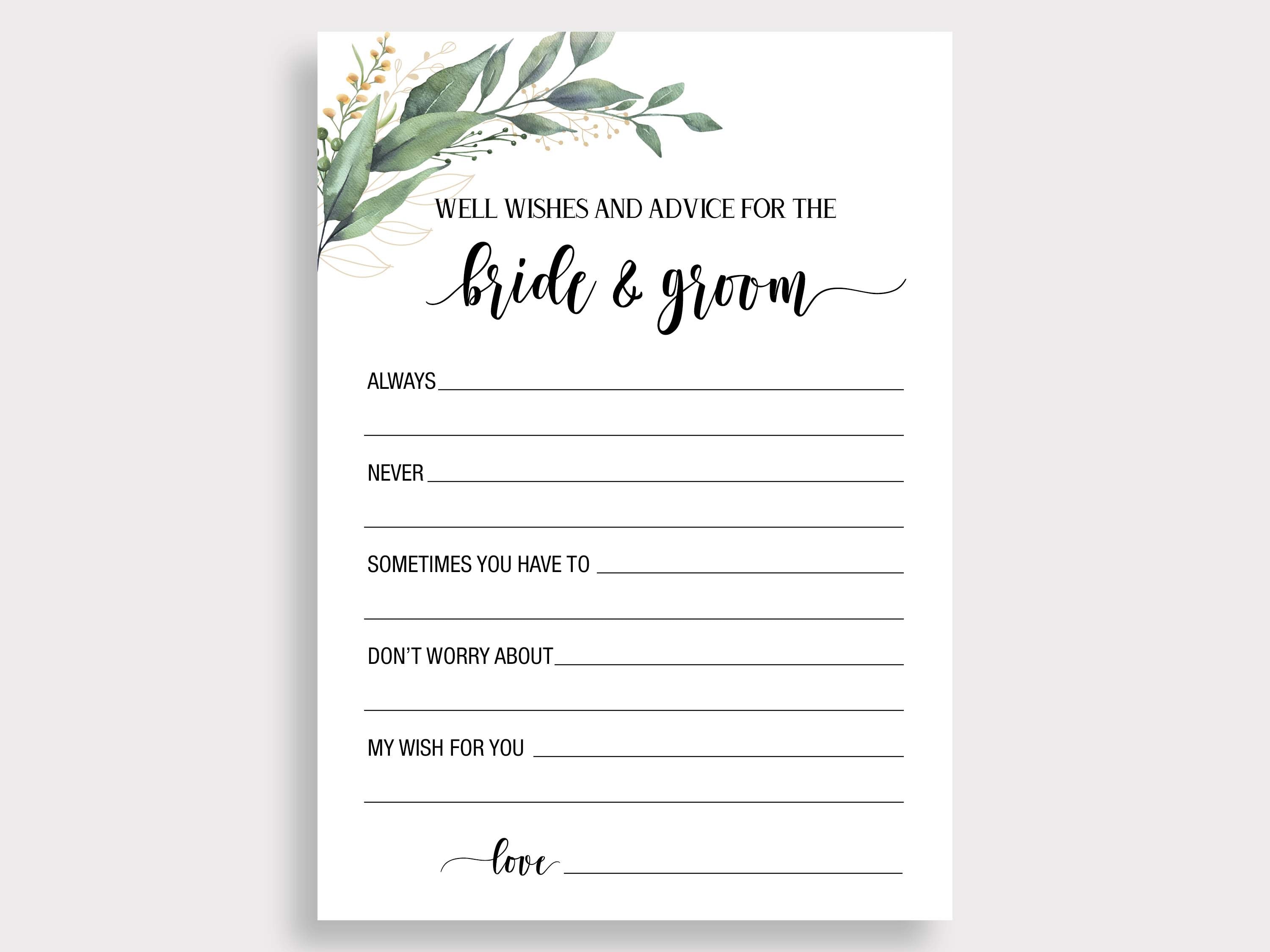Greenery, modern, unique wishes cards, advice cards, bridal shower games, table signs for your wedding, bridal shower, bachelorette party, hens party, engagement party.