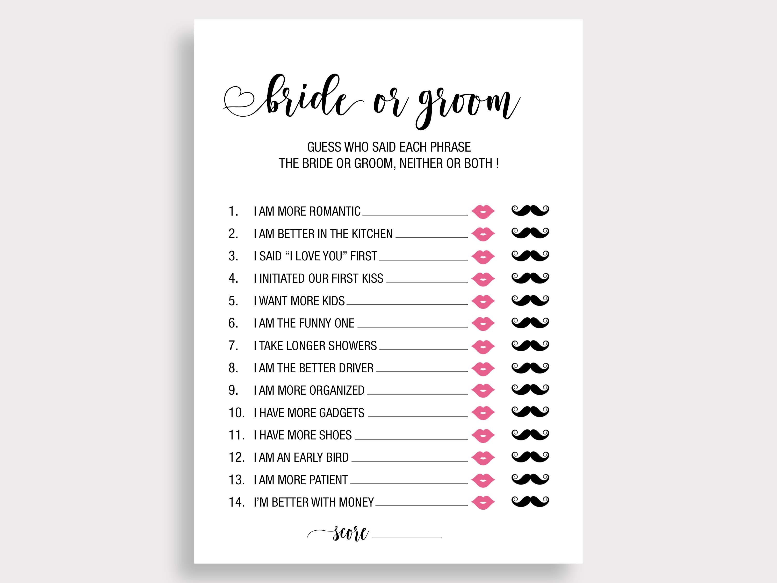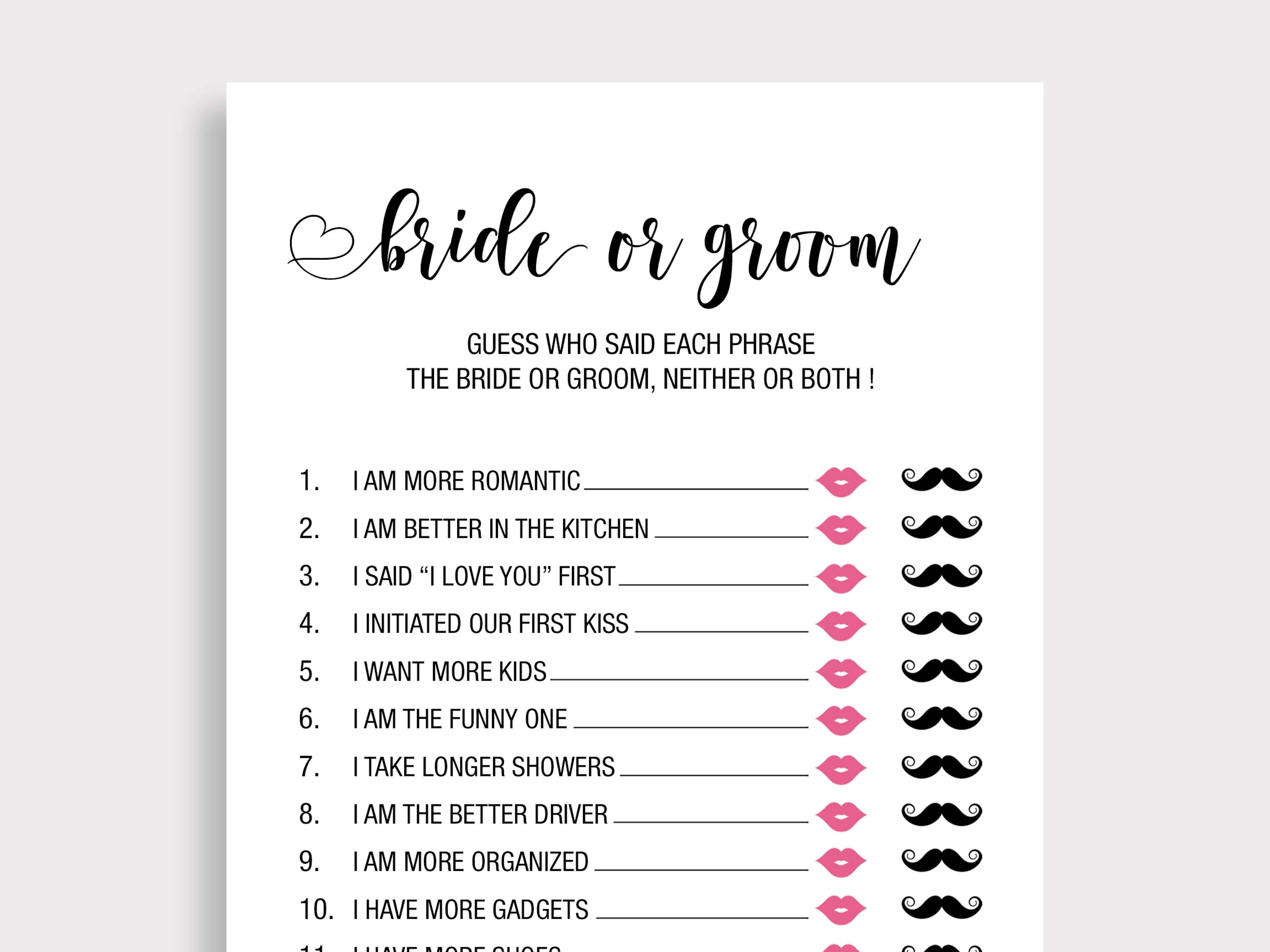 Who Said It, Bride or Groom Game. He Said She Said Game.
