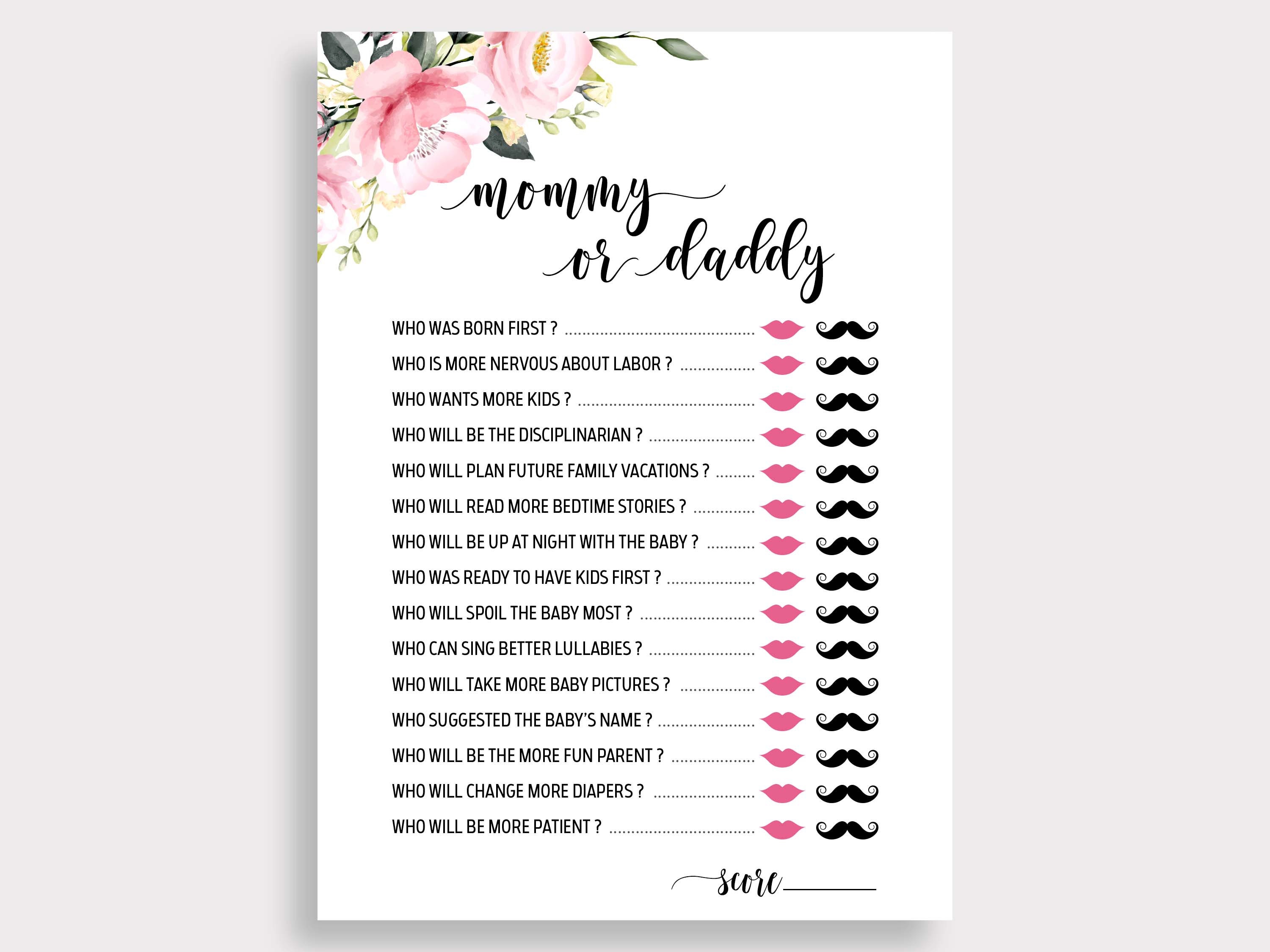 Mommy or Daddy Baby Shower Game