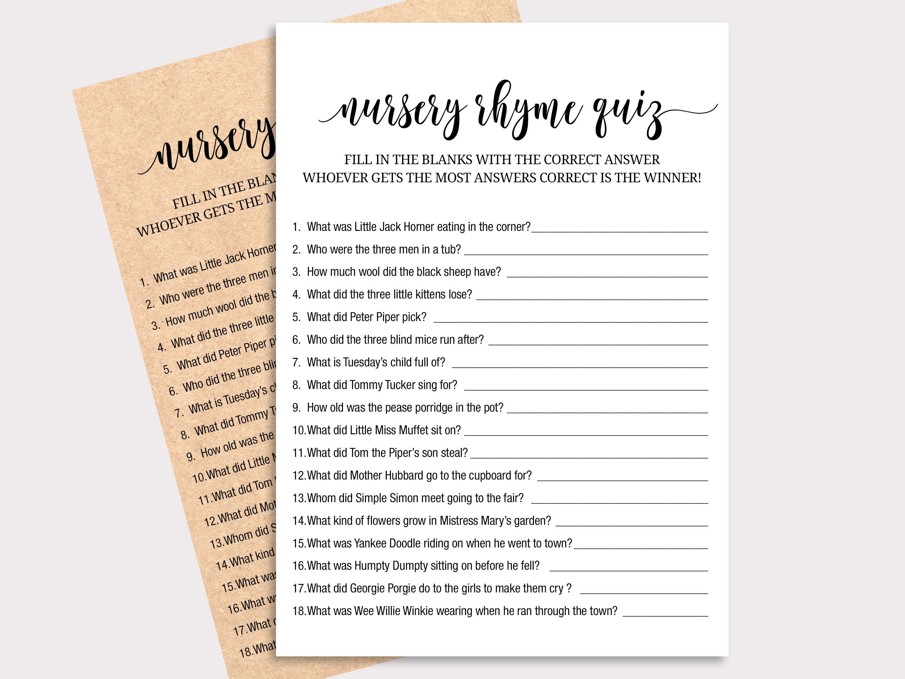 Nursery Rhyme Baby Shower Game