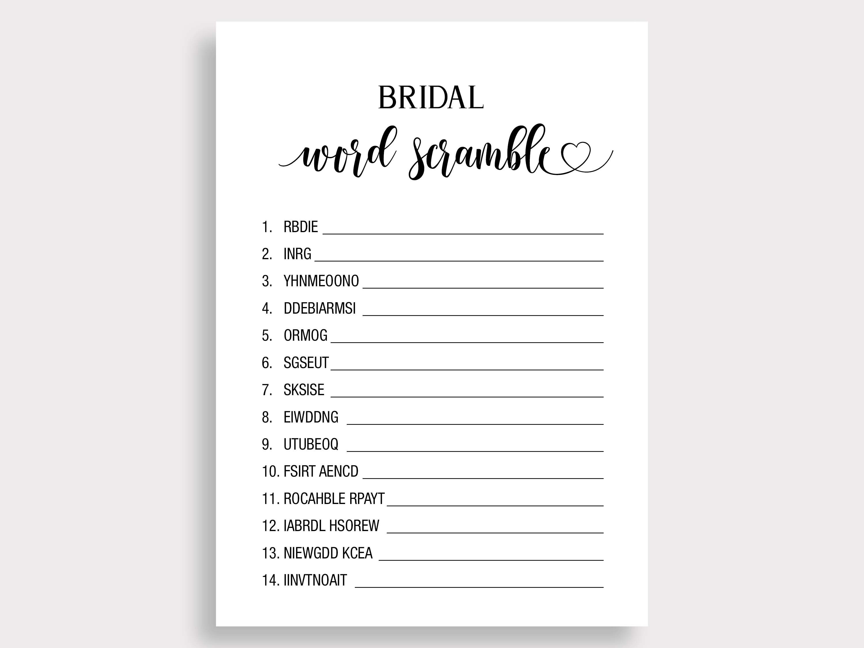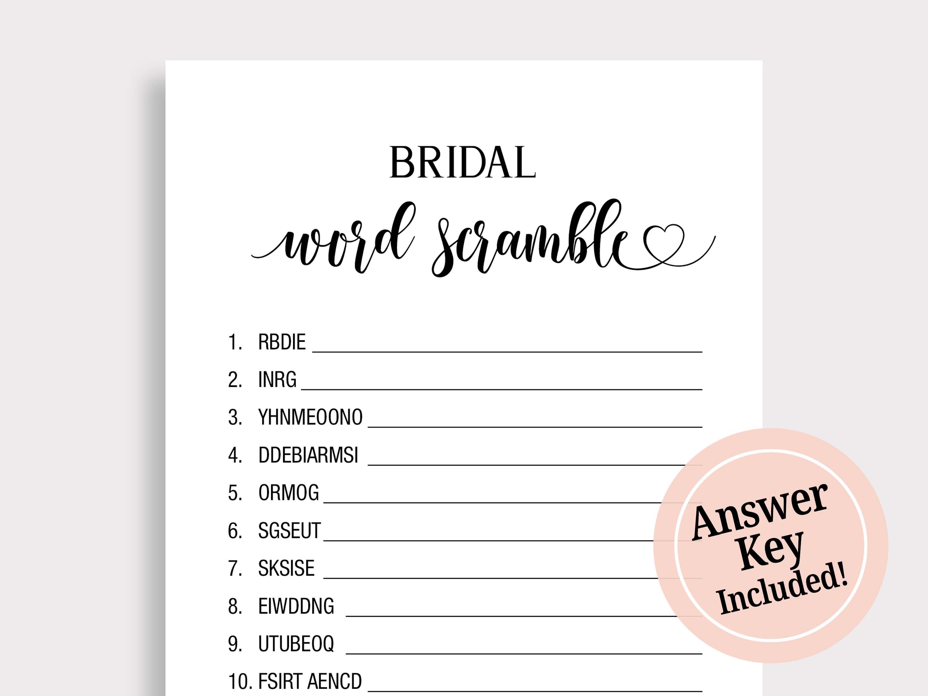 Word Scramble Bridal Shower Game