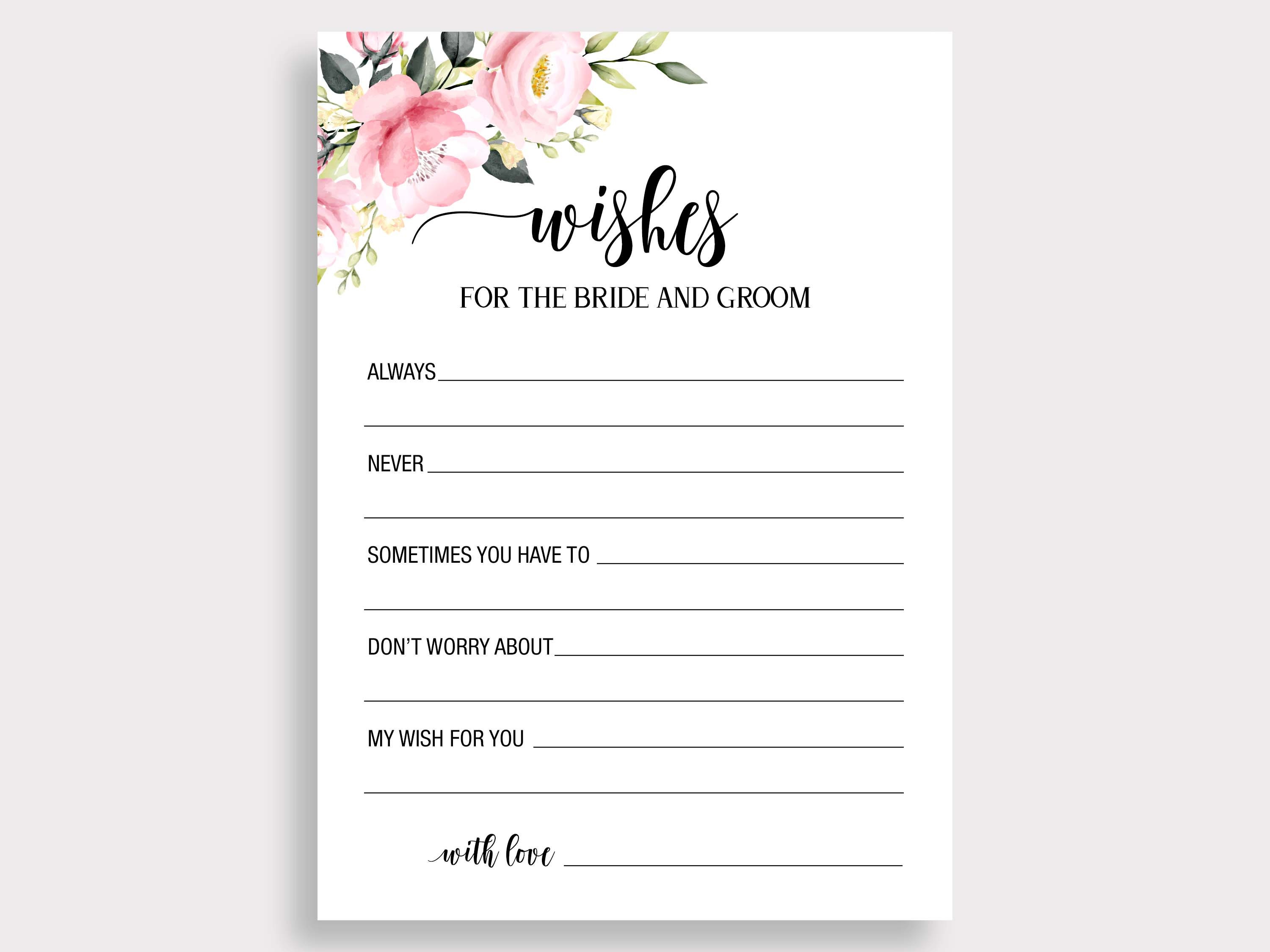 Modern, unique bridal shower games, table signs ,wishes cards, advice cards for your wedding, bridal shower, bachelorette party, hens party, engagement party. Pink floral, bohemian, pink roses.