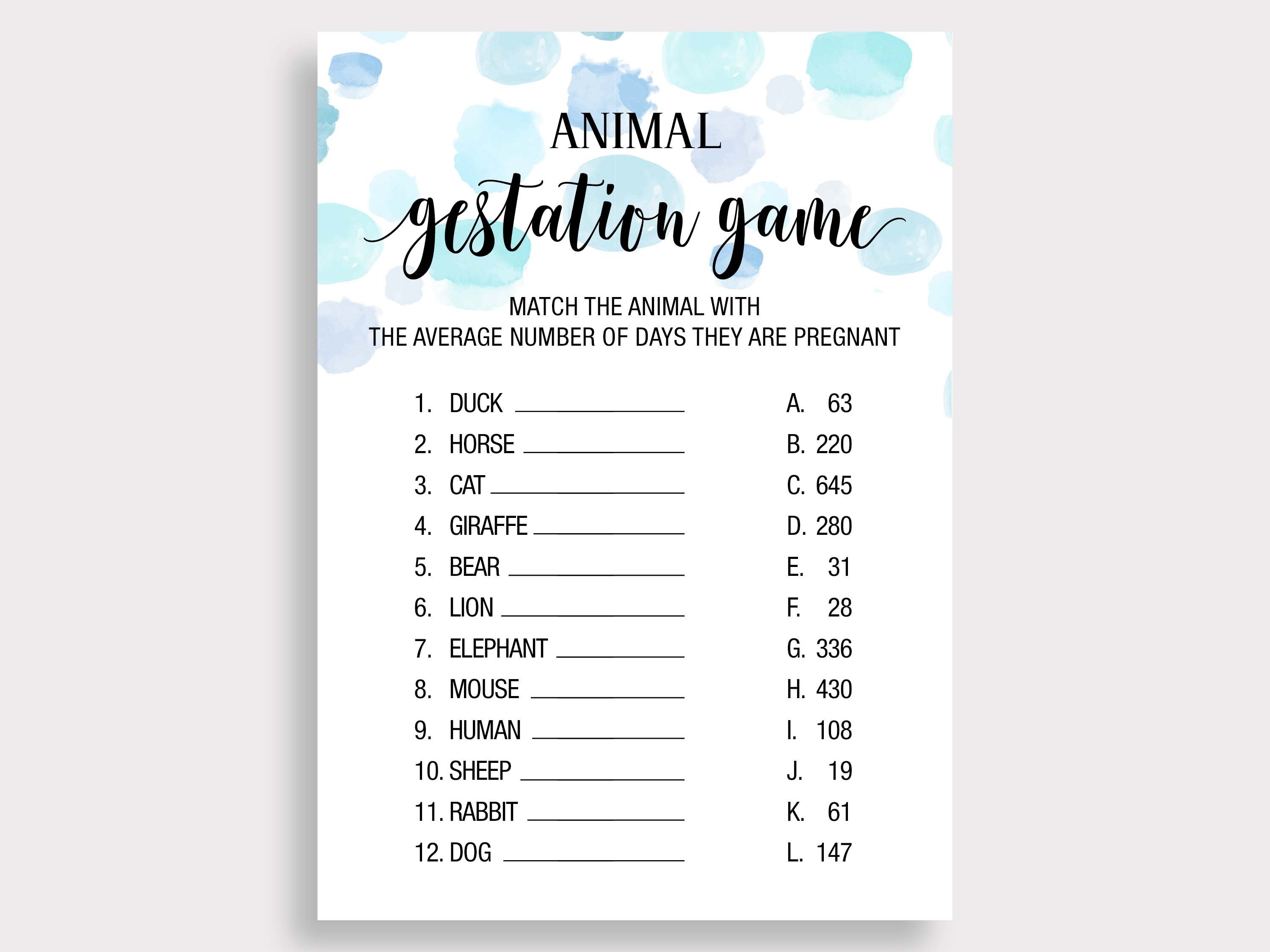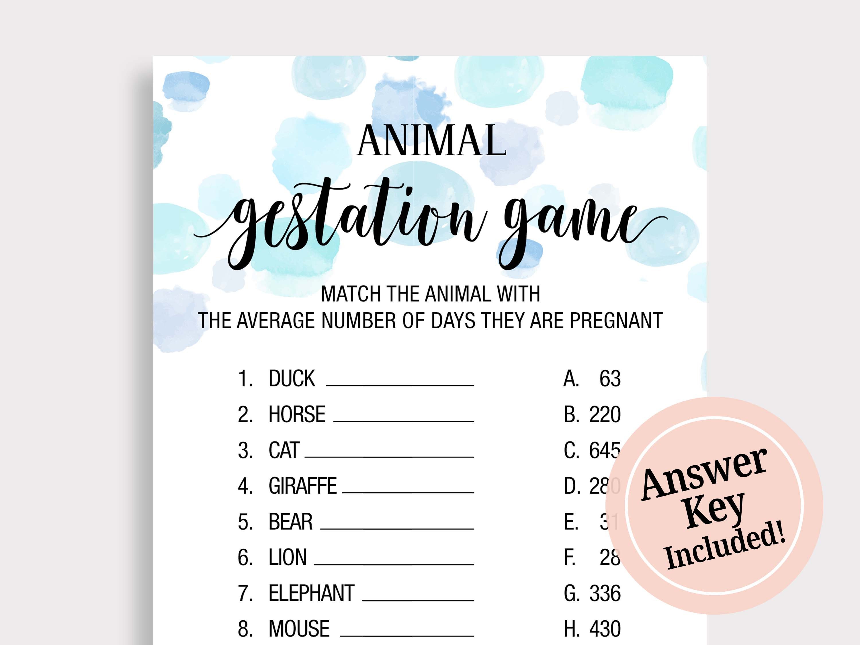 Animal Gestation Game. Animal Pregnancy Game