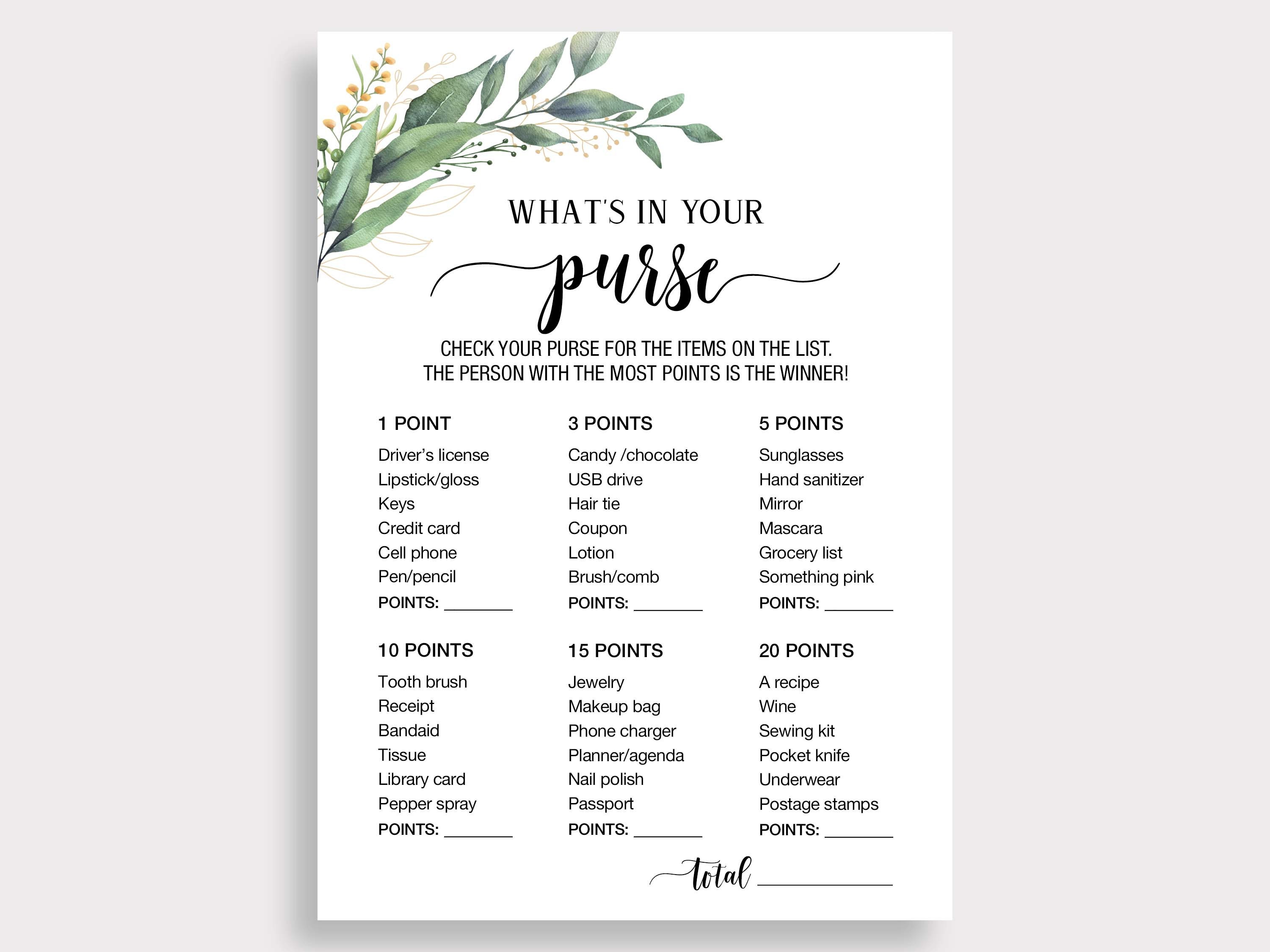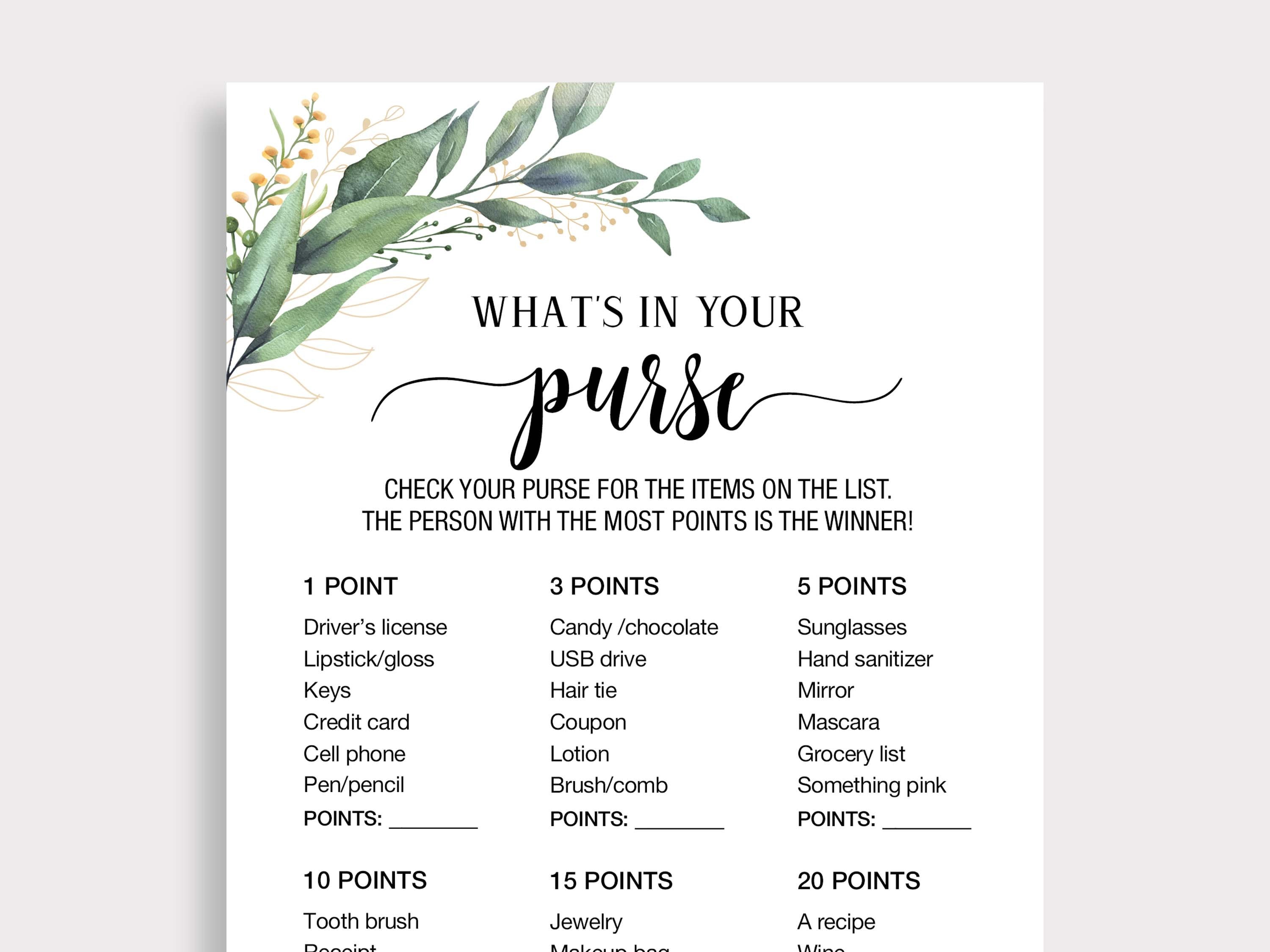 What's in Your Purse Bridal Shower Game