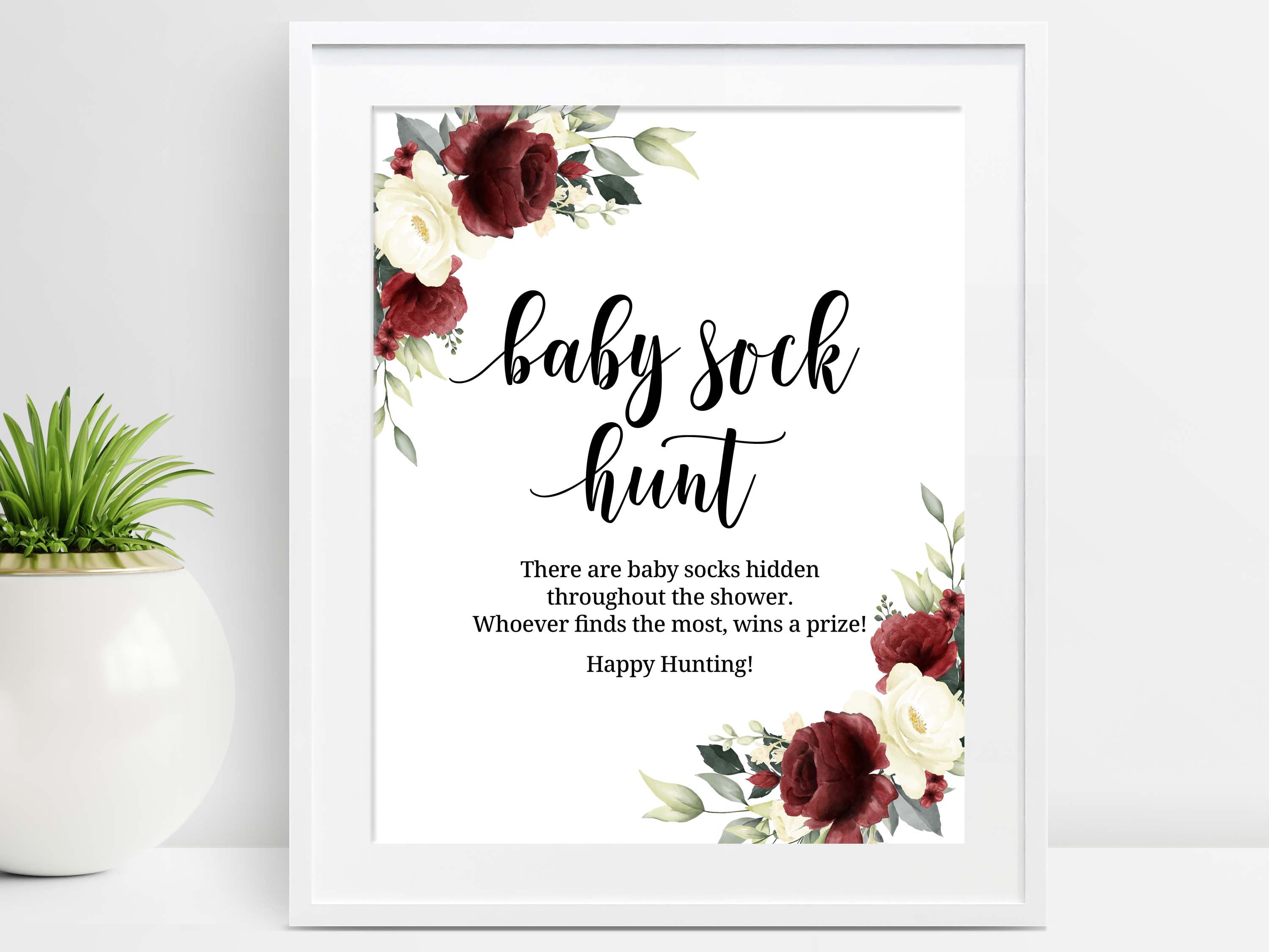 Burgundy, blush, floral modern, unique, fun baby shower games. Wishes cards, advice cards, baby shower table signs for baby shower, baby sprinkle.