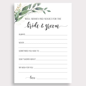 Greenery, modern, unique, fun bridal shower games, table signs ,wishes cards, advice cards for your wedding, bridal shower, bachelorette party, hens party, engagement party.