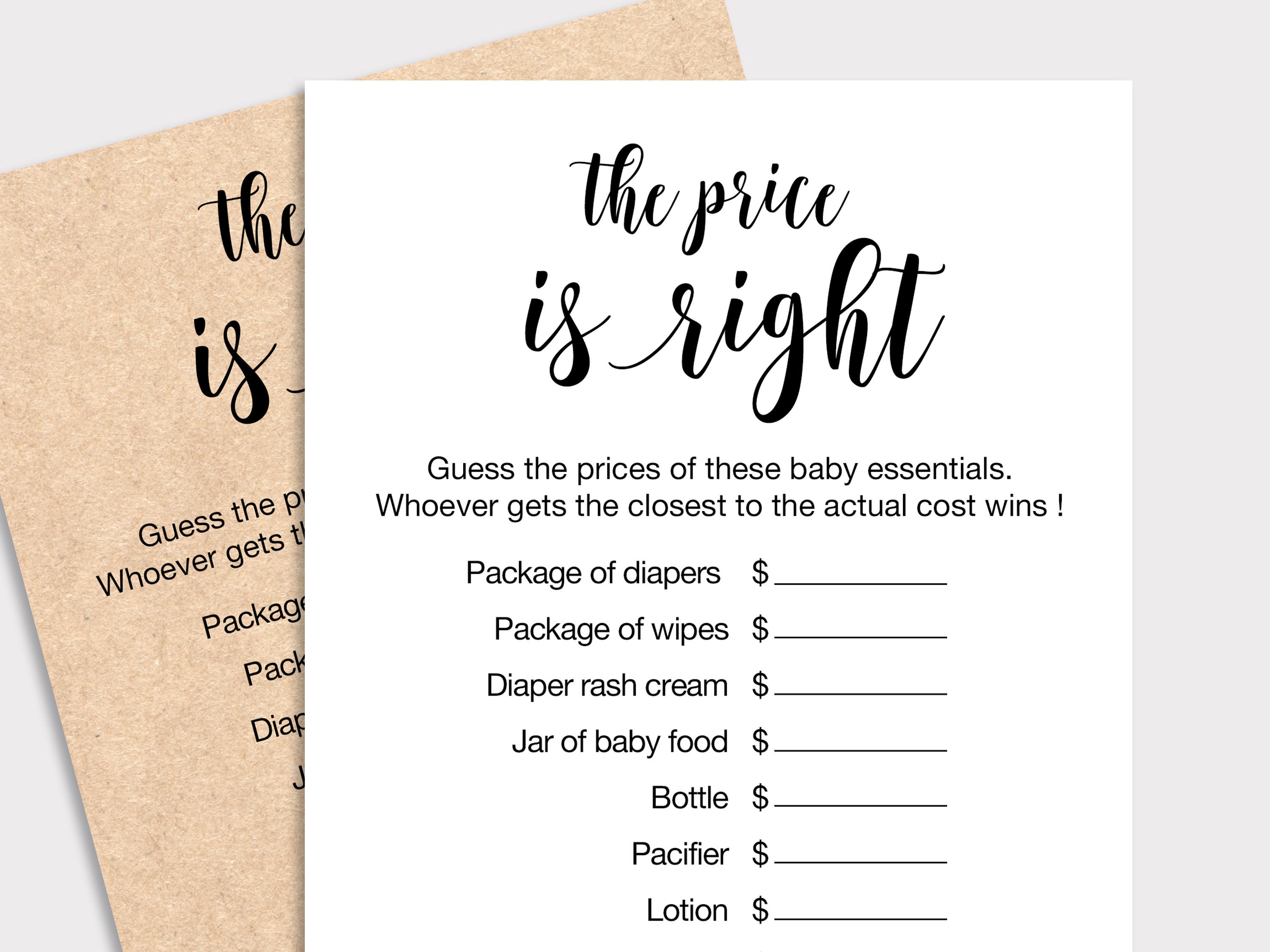 The Price Is Right Baby Shower Game